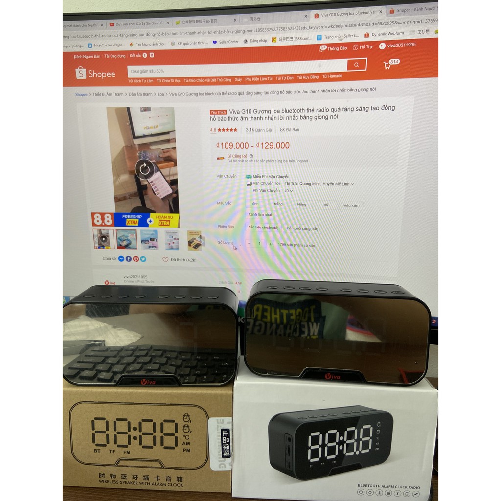 Freeship- Viva G10 Gương loa bluetooth thẻ radio quà tặng sáng tạo đồng hồ báo thức âm thanh nhận lời nhắc bằng giọng nói mua tại đây