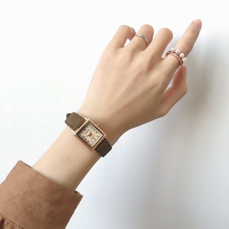 Đồng Hồ Nữ Chính Hãng GAIETY TD5 Dây Da Cao Cấp Mặt Vuông Đẹp Thời Trang Vintage Giá Rẻ free ship